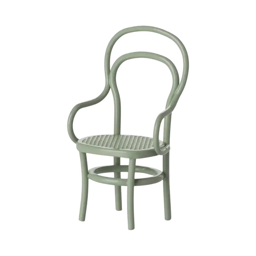 Denne fine stol fra Maileg er en charmerende miniature i vintage-stil. Den mintgrønne farve giver et friskt og legende udtryk, der passer perfekt ind i musenes hjem.