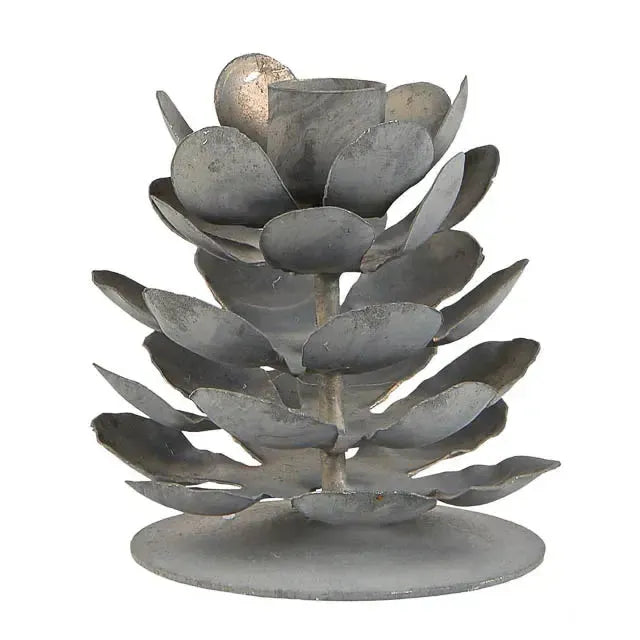 Denne fine lysestage fra Ib Laursen er designet som en kogle og passer til kertelys med diameter på 1,3 cm. Den kombinerer et naturligt formsprog med et rustikt udtryk i zink – perfekt til at skabe hygge i efterårs- og juletiden.