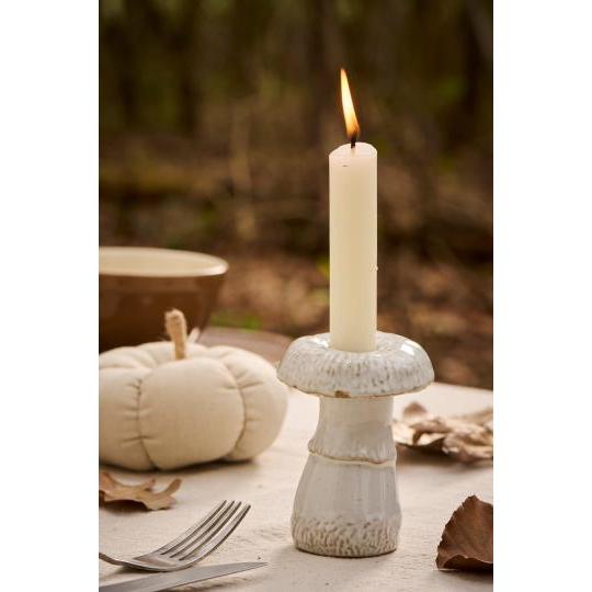 Den håndlavede fornemmelse og de bløde linjer gør stagen til et charmerende indslag i indretningen. Formen er inspireret af skovens svampe og passer smukt ind i borddekorationer, på hylder eller i vindueskarmen.