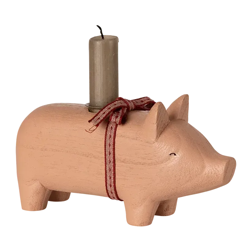 Maileg Jul, Trælysestage, Gris, Medium, Rosa, 14-5801-00