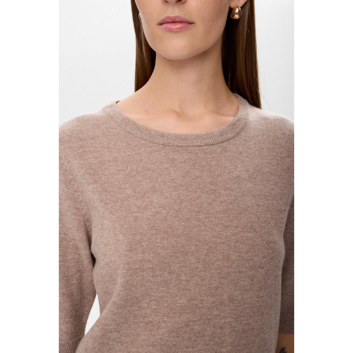 Nukally SS Pullover fra Nümph er en kortærmet pullover i farven Taupe Grey. Den har en afslappet silhuet og en blød strikket struktur, der giver et let og luftigt udtryk.