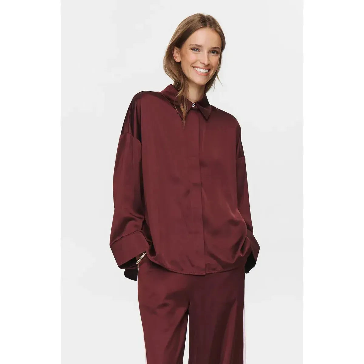 Nusantina Shirt fra Nümph er en stilren skjorte med et feminint og moderne udtryk. Den dybe bordeaux farve skaber varme og karakter, mens det enkle snit gør den nem at style til både hverdagsbrug og særlige lejligheder.
