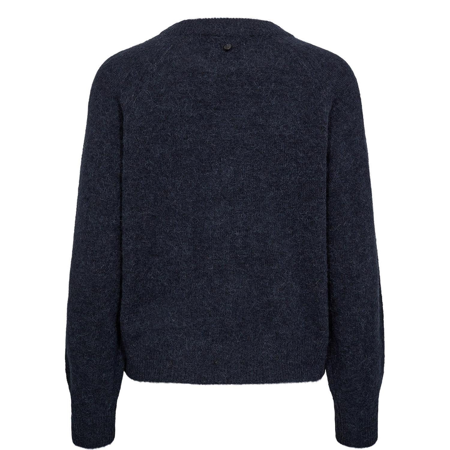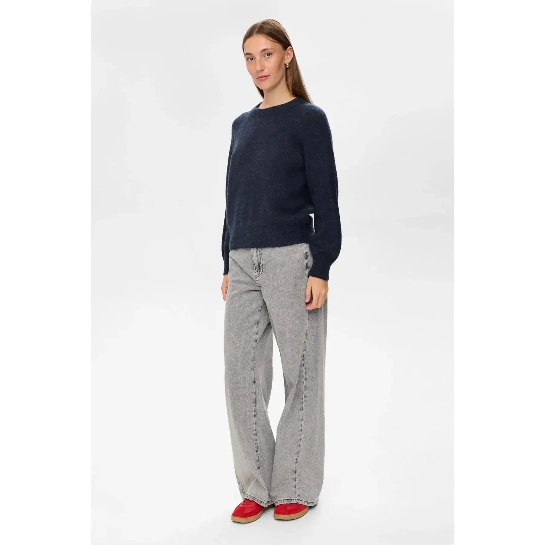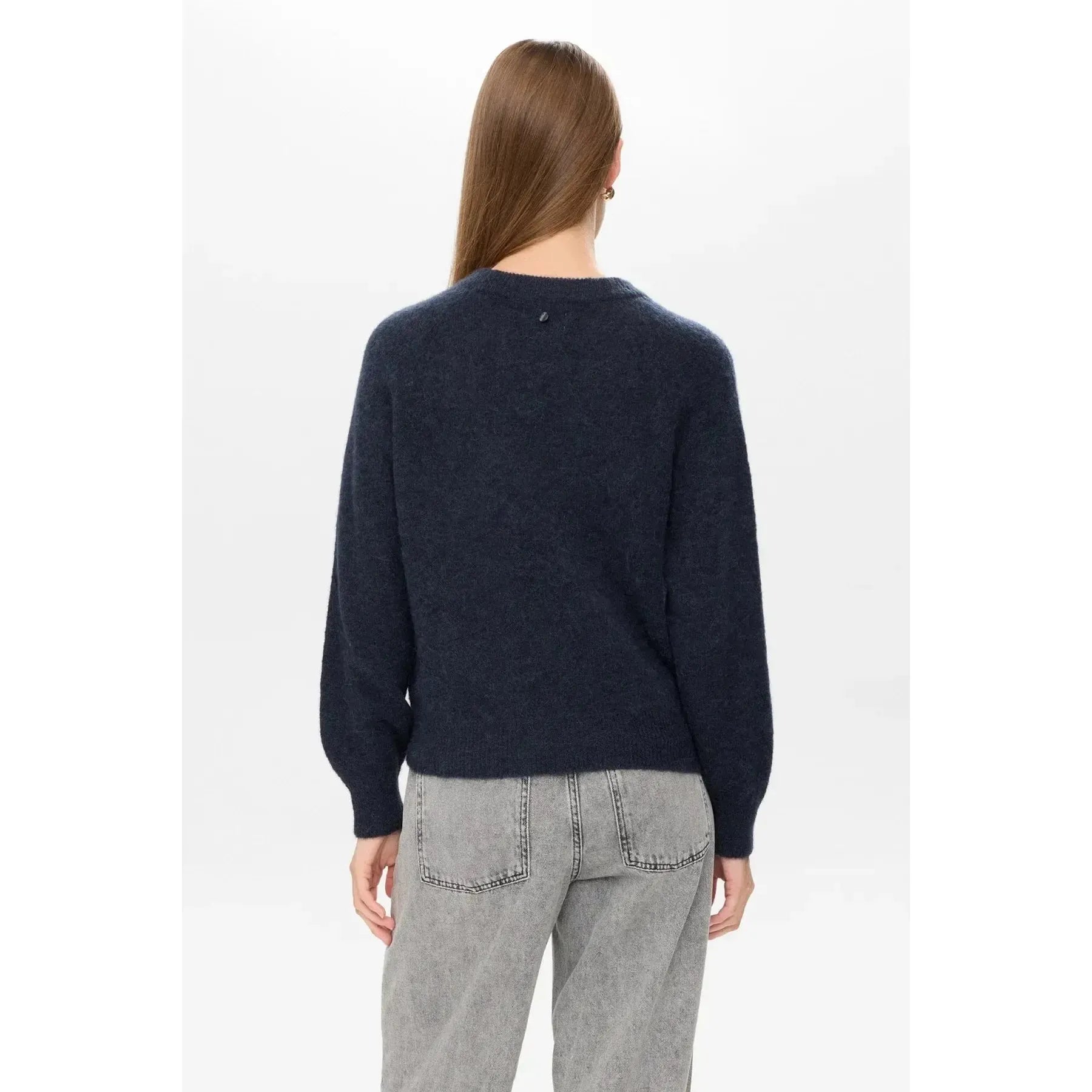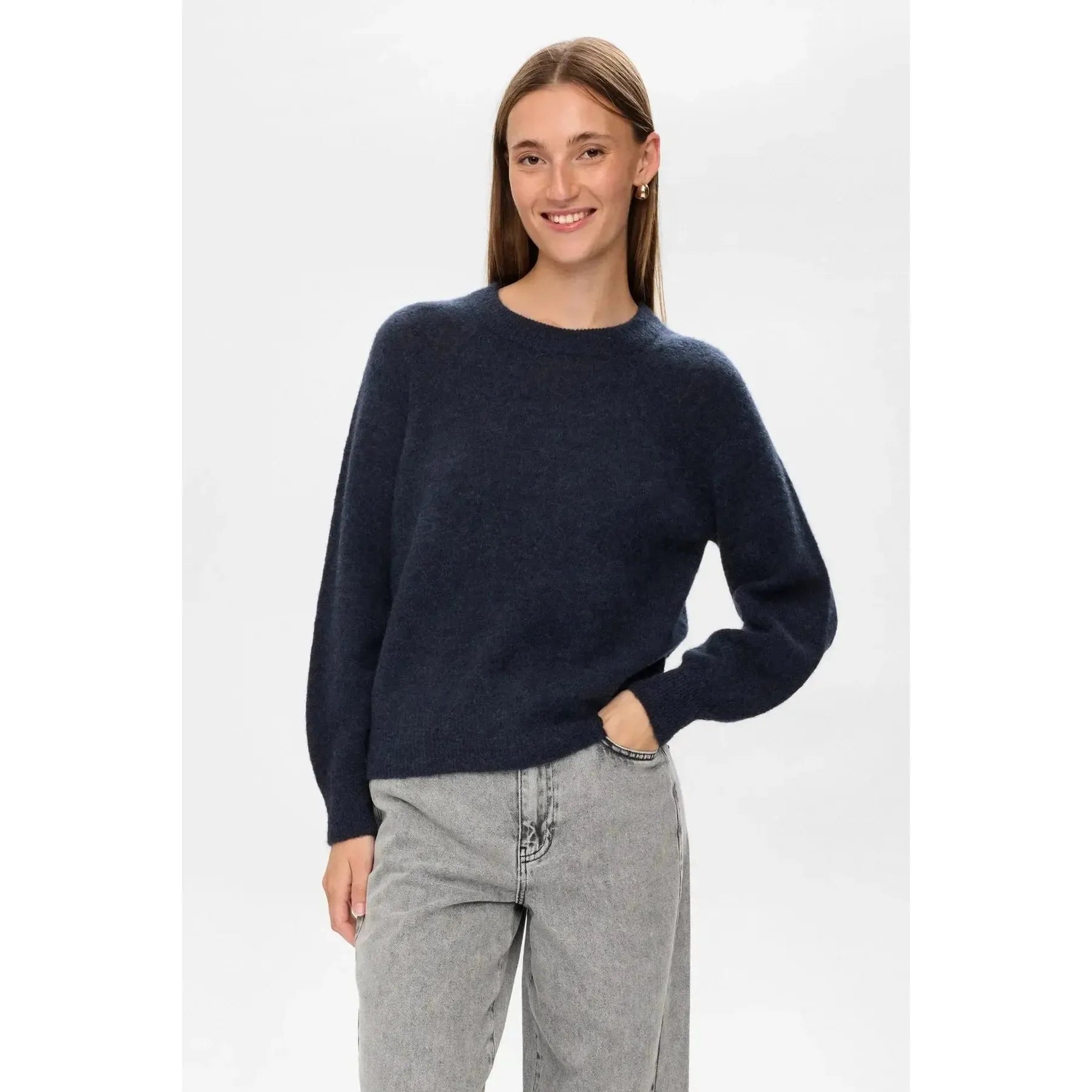 Nuriette Pullover fra Nümph er en klassisk strik i farven Dark Sapphire, som giver et roligt og stilrent udtryk. Den enkle designlinje gør den til en alsidig favorit i garderoben.