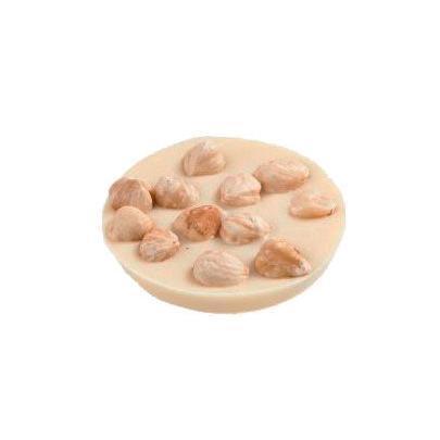 Ingredienser: Hvid Chokolade (70%): Sukker, kakaosmør, sødmælkspulver, emulgator (Sojalecithin), naturlig vanilje aroma., Hasselnødder (30%).