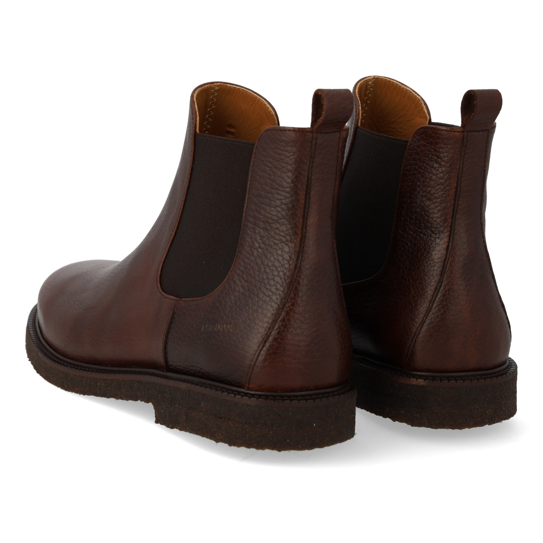 Støvlen har funktionelle elastiksider og en hælstrop, som gør den nem at tage af og på. Den mandelformede snude og vatterede indersål sikrer god komfort, mens den fleksible rågummisål i fornybar naturgummi giver et let og behageligt tråd. Indvendigt er støvlen foret med blødt læder.