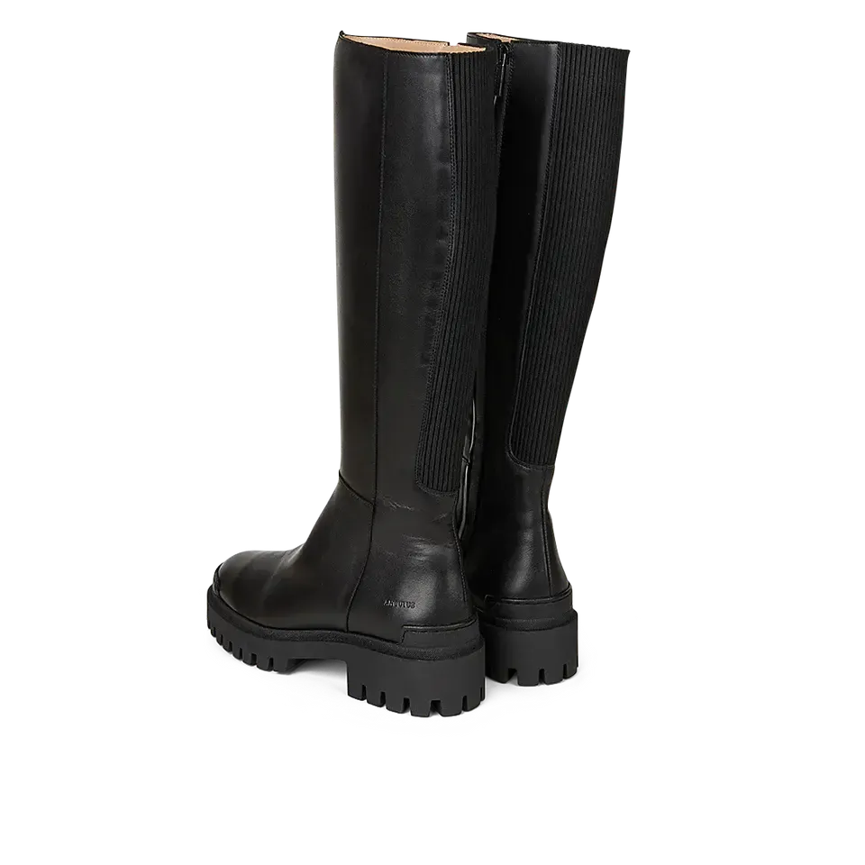 Den høje silhuet og det enkle udtryk gør støvlen nem at style til både bukser, kjoler og strømpebukser – en stærk tilføjelse til garderoben, der holder sæson efter sæson.