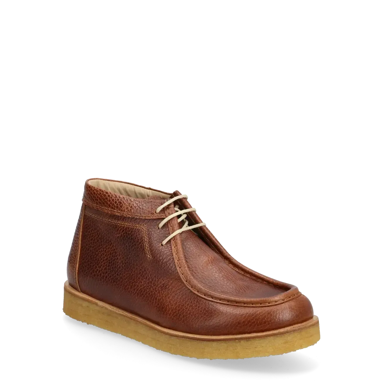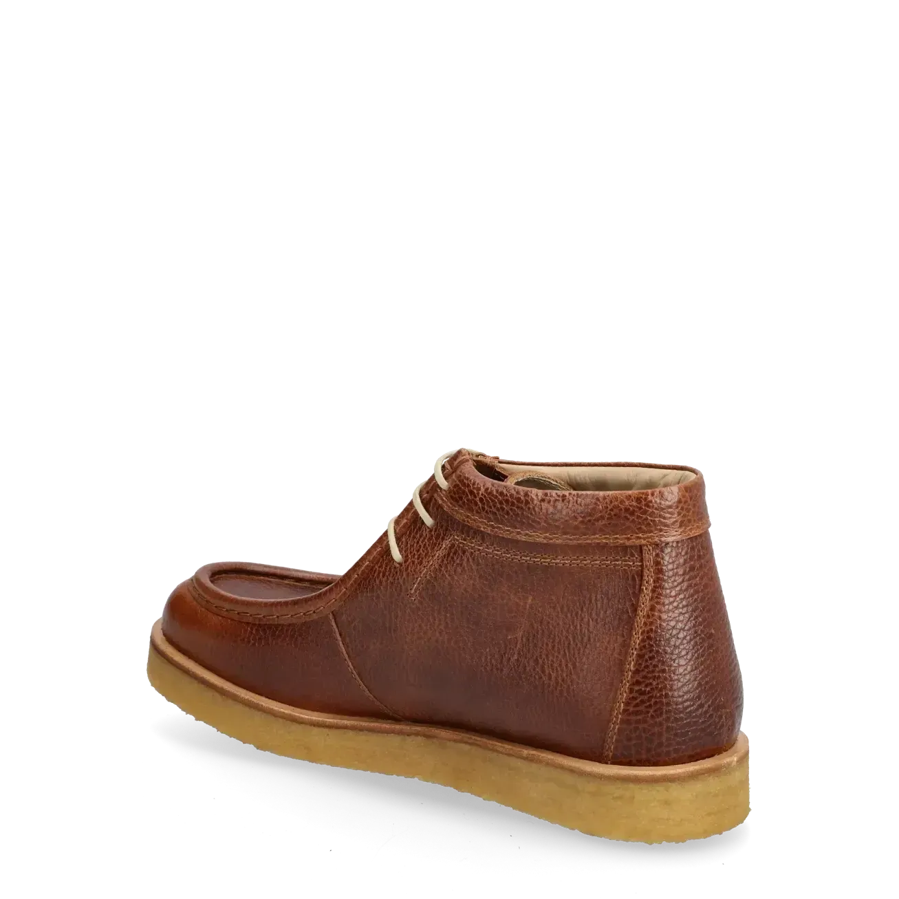 Støvlen er fremstillet i glat, vegetabilsk garvet læder, der former sig efter foden og kun bliver smukkere med tiden. Den har snørelukning foran, robust sål og rund snude, som giver et komfortabelt og holdbart fit.