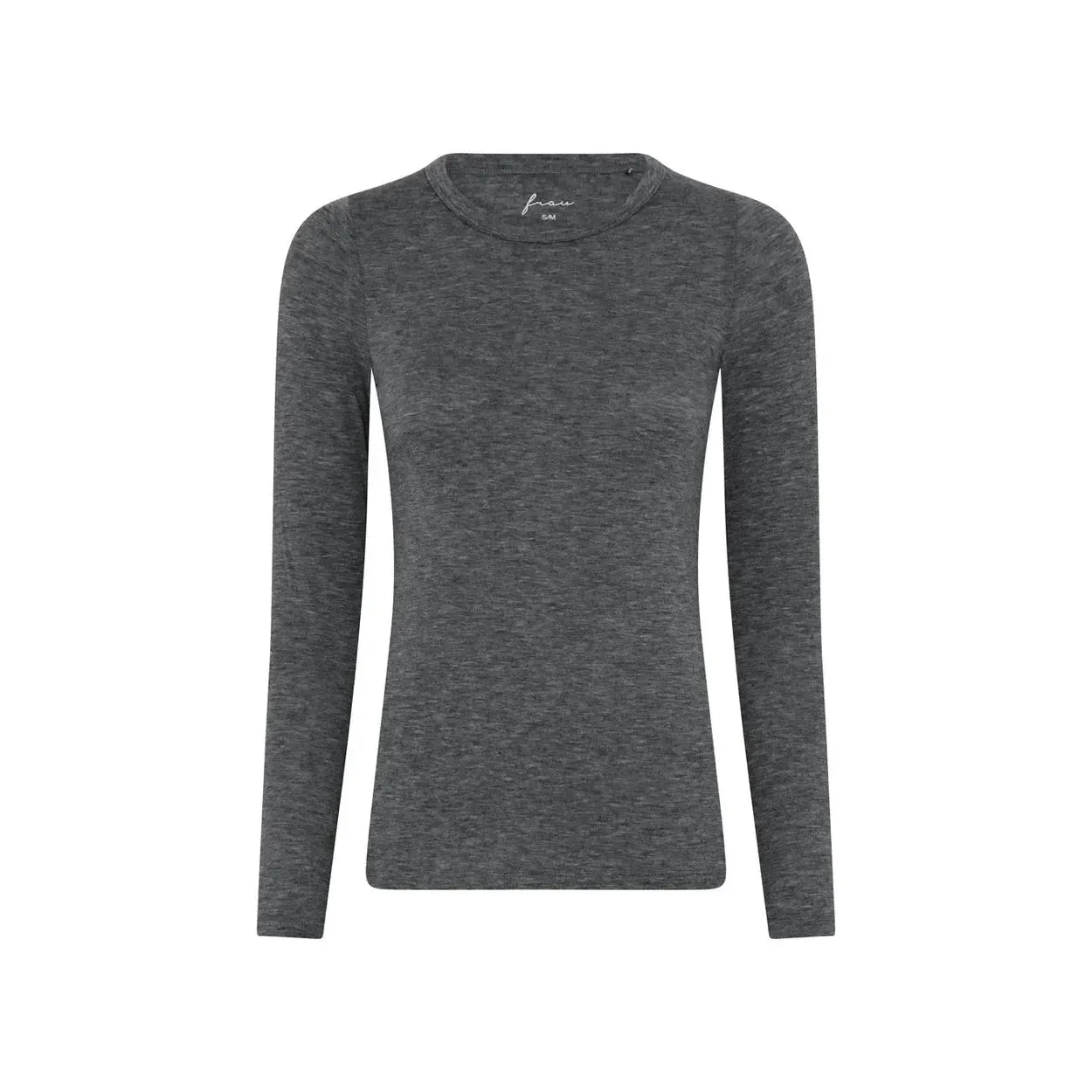 Frau, Lucca Cashmere LS O-neck Top, Dark grey melange