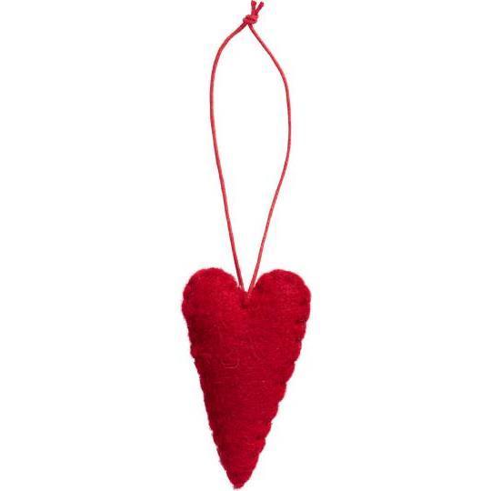 Hjerterne er lavet i blød filt, som giver et varmt og rustikt look. De små snore gør dem nemme at hænge op, og deres tidløse form gør dem velegnede både til jul og som helårsdekoration.