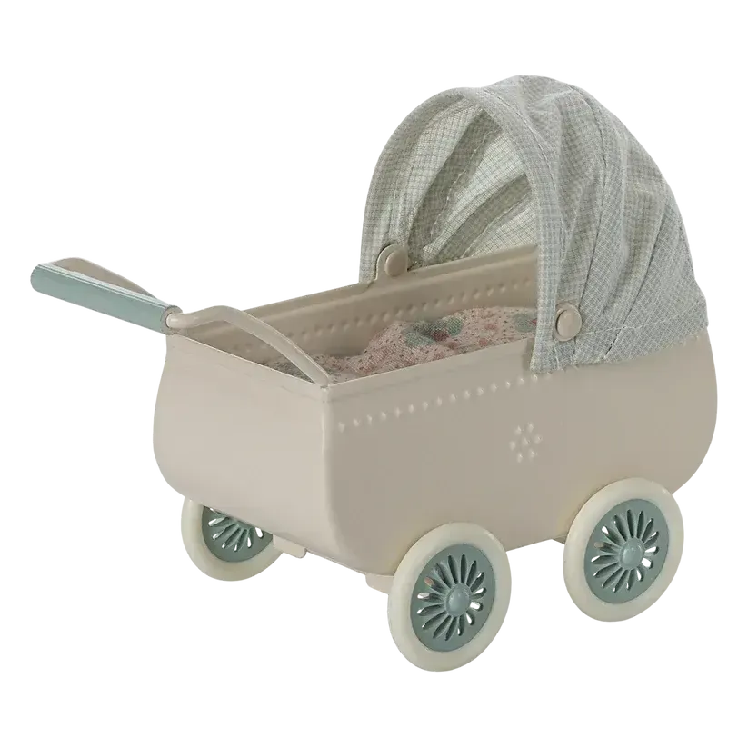 Maileg, Barnevogn m/baby mus, Mint, 11-5103-00