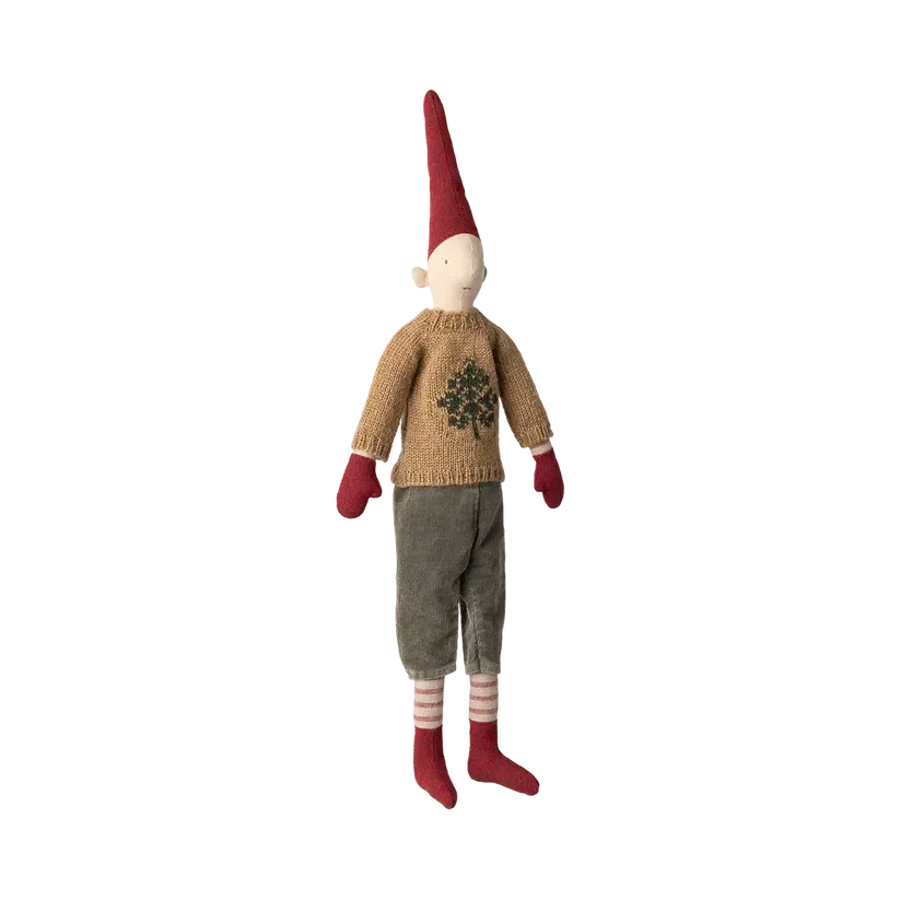 Denne nissedreng i størrelse 3 fra Maileg er en del af den populære nissekollektion. Han er klædt i klassiske bukser og en strikket sweater, som giver ham et hyggeligt og traditionelt udtryk.