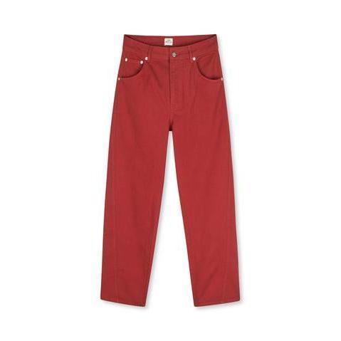 Paris Christel Jeans fra Mads Nørgaard er et par klassiske, mørkerøde jeans med lige ben og høj talje. De er fremstillet i en kraftig bomuldskvalitet med stræk, som giver både struktur og komfort.