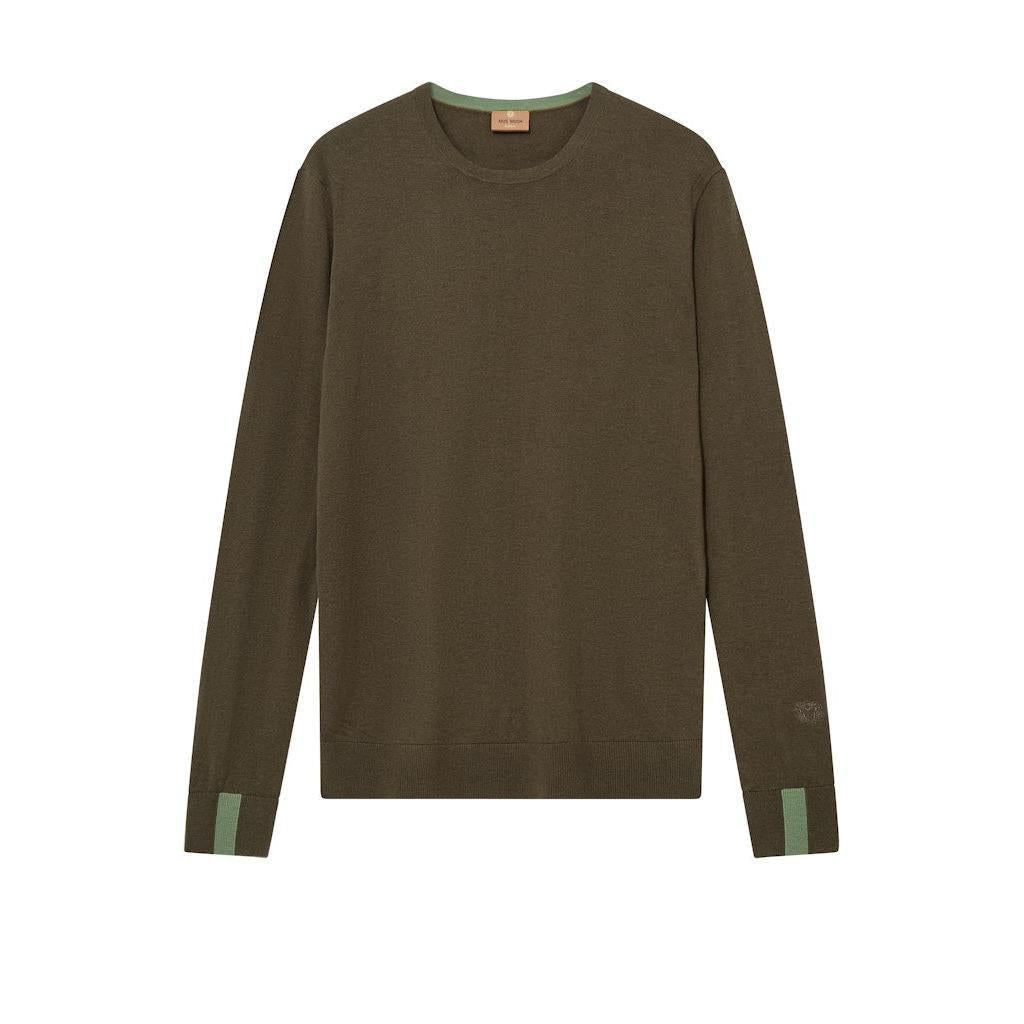 Adam Soft Knit fra Mos Mosh Gallery er en enkel og stilren striktrøje i farven Grape Leaf. Den har et klassisk snit med rund hals og ribkanter, som giver et roligt og velklædt udtryk – perfekt til både hverdag og arbejde.