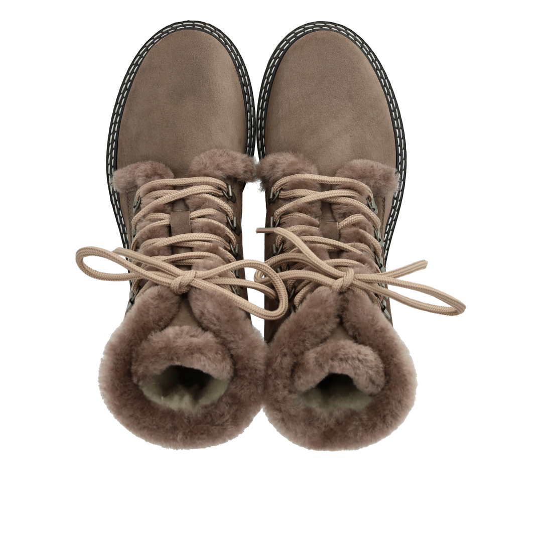 Angulus, Lace-up Støvle Med Uldfoer, Taupe