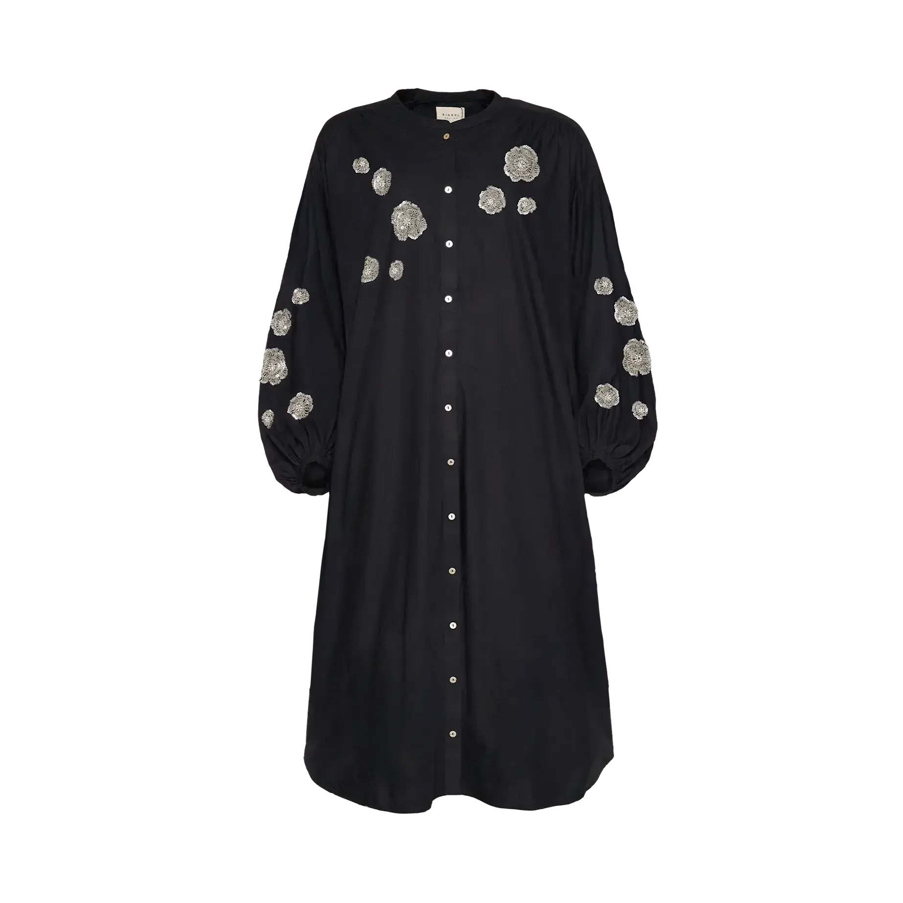 Mildred Dress fra Sissel Edelbo er en lang kjole i sort bundfarve med smukt print. Kjolen er lavet i let kvalitet og har en rummelig pasform, der giver et feminint og behageligt udtryk.