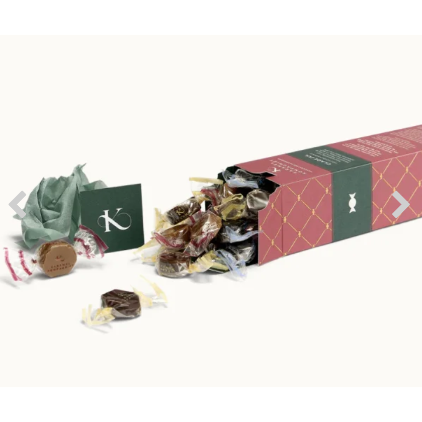 Æsken er plastikfri og fremstillet af FSC-certificerede materialer, mens karamellerne er pakket i komposterbart cellofan med OK Compost Home-certifikat – et bæredygtigt valg, der stadig emmer af jul og hygge.