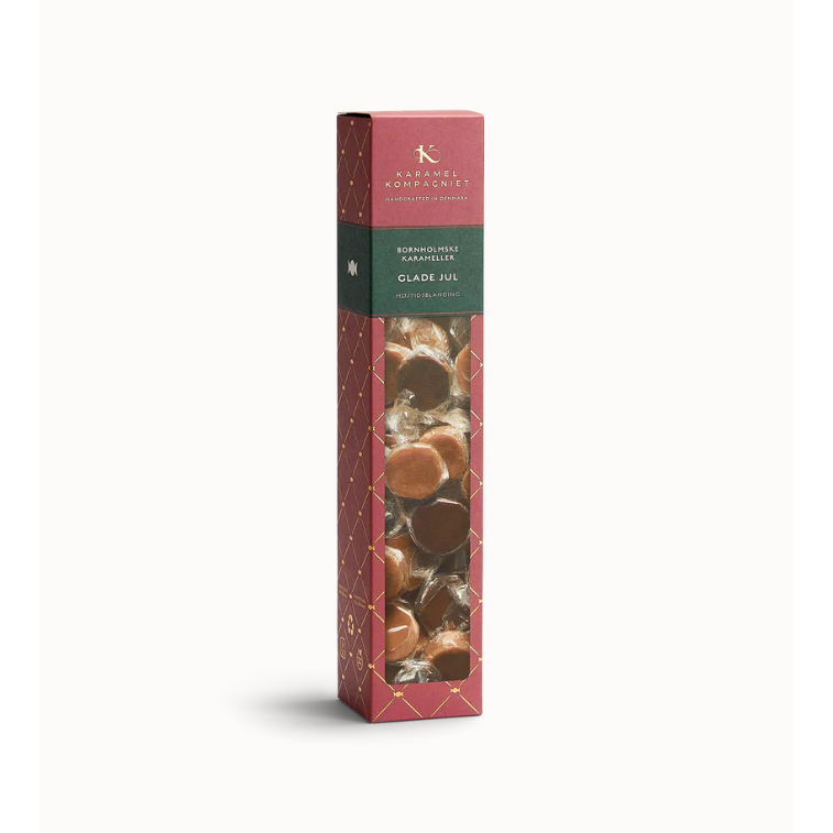 Glade Jul fra Karamel Kompagniet er en klassisk højtidsblanding med håndlavede karameller, skabt efter engelske familietraditioner og en forfinet opskrift fra 1894. En smag af jul, håndlavet med kærlighed på Bornholm.