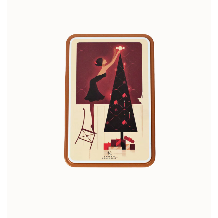 Karamel Kompagniets Juledag er en stemningsfuld juleblanding i en dåse prydet med en smuk illustration af den danske kunstner Mads Berg. En hyldest til dansk julehygge, fyldt med 236 g håndlavede karameller med smag af sæsonens varme krydderier, chokolade og lakrids.