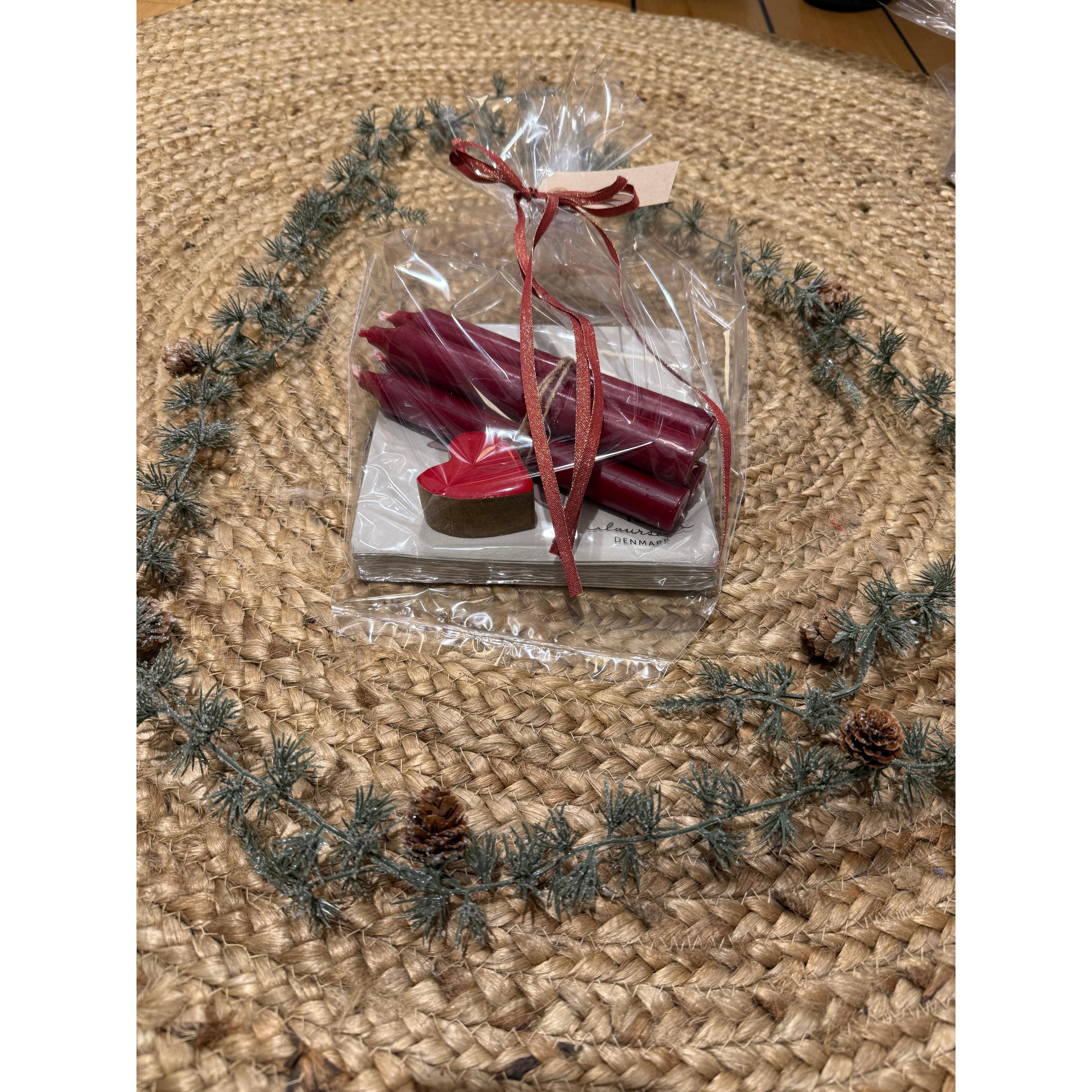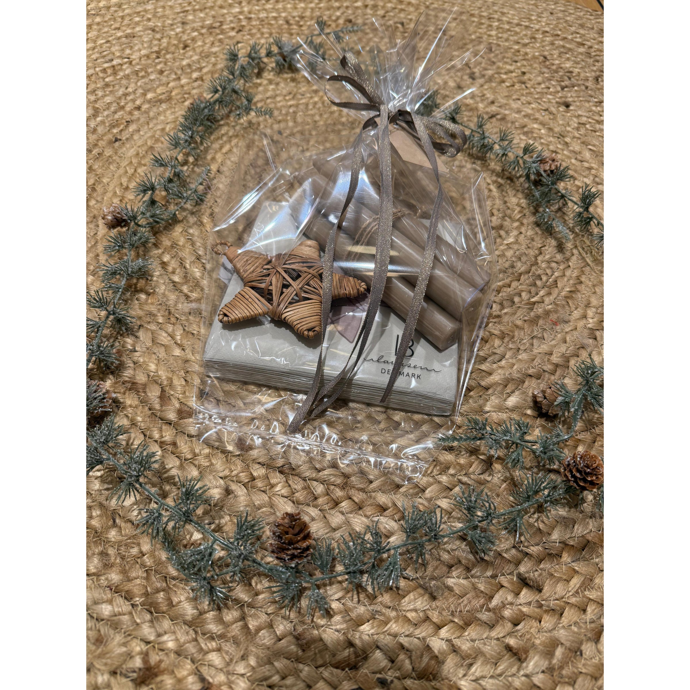 Denne gaveæske er en fin lille hilsen – klar til at glæde én, der sætter pris på de små, hyggelige øjeblikke i juletiden. Indpakket med omhu og indeholdende fire klassiske kronelys, et sæt smukke servietter fra Ib Laursen og et stykke assorteret pynt, er det en gave, der både kan bruges og nydes med det samme.