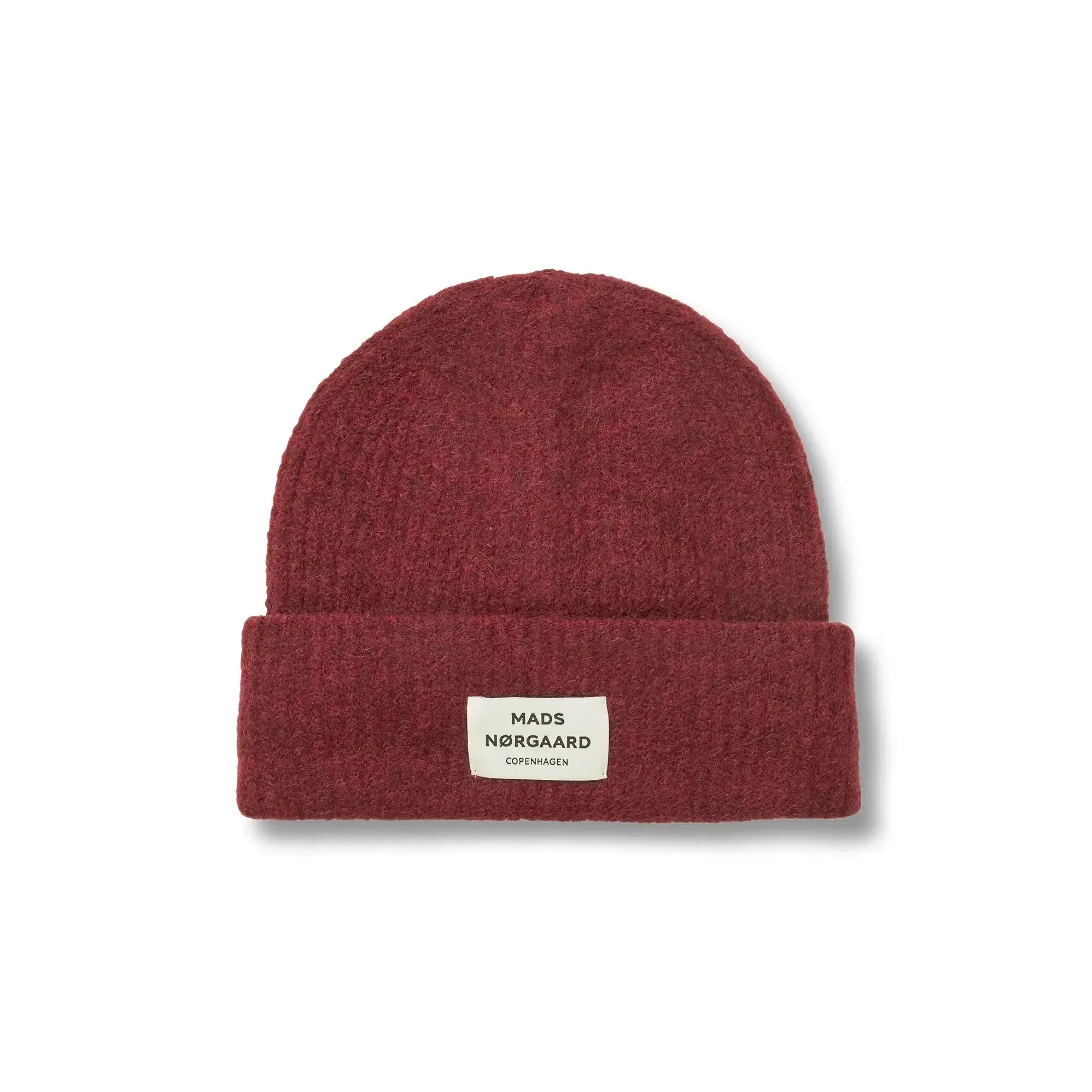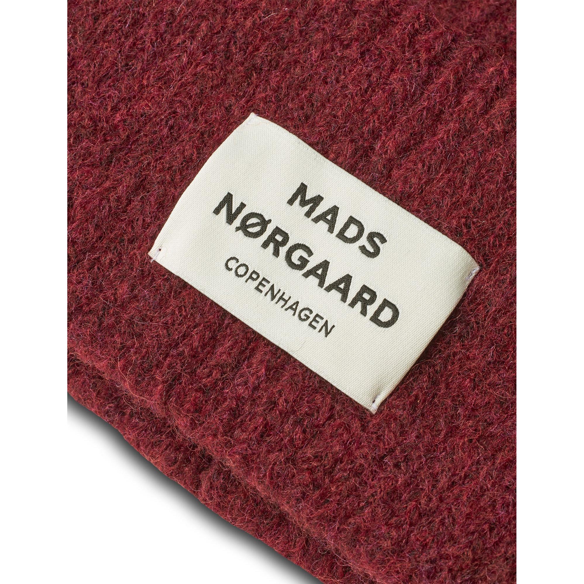Tosca Anju Hat fra Mads Nørgaard er en enkel og stilren hue med opsmøg og lille logomærke foran. Farven Winery er en smuk, vinrød nuance, der giver varme og karakter til vintergarderoben.