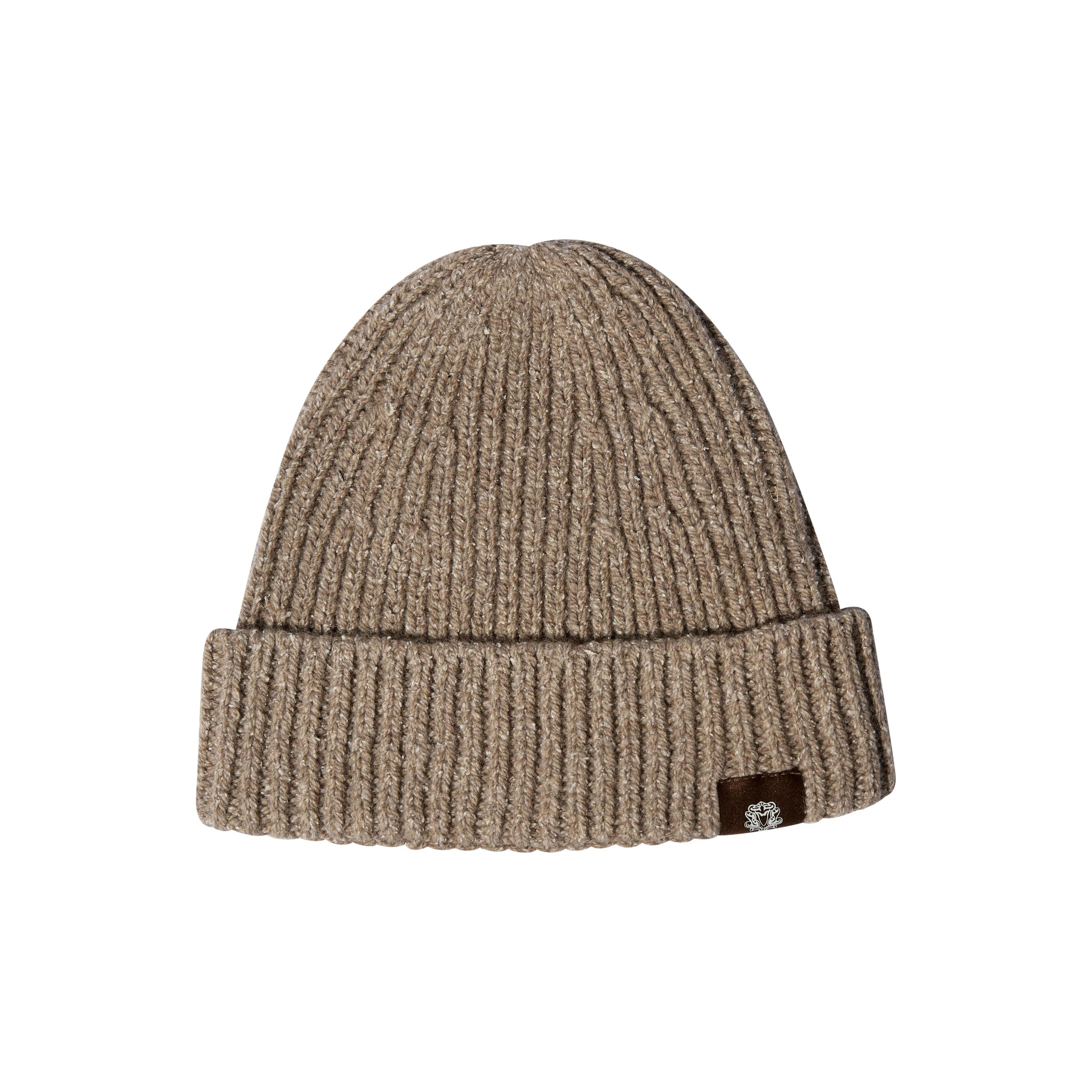 Huen er ribstrikket i en fleksibel strik, der sidder behageligt og holder godt på varmen. Designet er enkelt med opsmøg og lille logodetalje foran, som gør den tidløs og nem at kombinere med resten af garderoben.