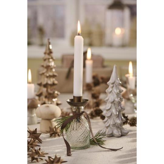 Ib Laursens Apotekerglas til lys er en klassisk og alsidig lysestage i klart glas, der passer til bedelys eller kronelys med en diameter på 2,2 cm. Det tidløse design gør den nem at integrere i enhver indretning – fra det rustikke til det moderne.
