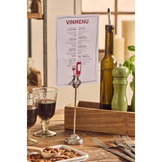 Den lille spiralholder i toppen gør det nemt at sætte et kort fast, og den solide fod sikrer stabilitet. Brug den til festlige lejligheder, bryllupper, konfirmationer – eller til hverdag på skrivebordet med et billede eller en note.