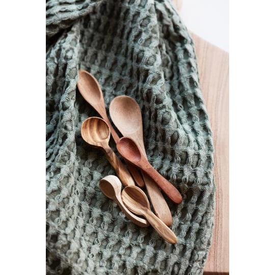 Hver ske har sin egen unikke åretegning og farvetone, hvilket giver et personligt præg til din servering. Det glatte træ ligger godt i hånden og passer fint i små skåle eller saltkar.