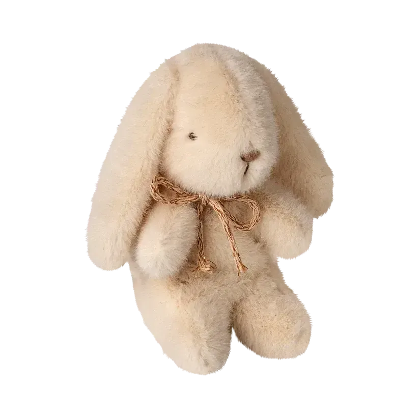 Denne søde lille kanin fra Maileg er fremstillet i et ekstra blødt plysstof og pyntet med en fin sløjfe omkring halsen. Den har et blidt udtryk, som gør den til en oplagt krammeven for børn i alle aldre.