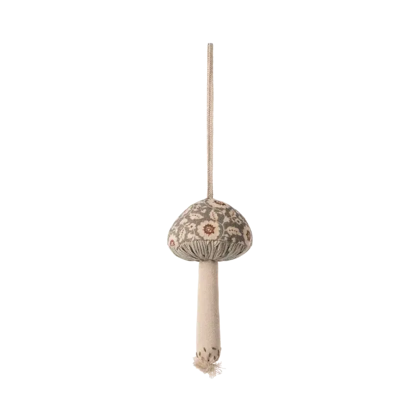 Mailegs grønne svampeophæng med blomstermønster er en fin og dekorativ tilføjelse til juletræet eller små juleopstillinger. Den bløde form og tekstile overflade giver et naturligt og poetisk udtryk.