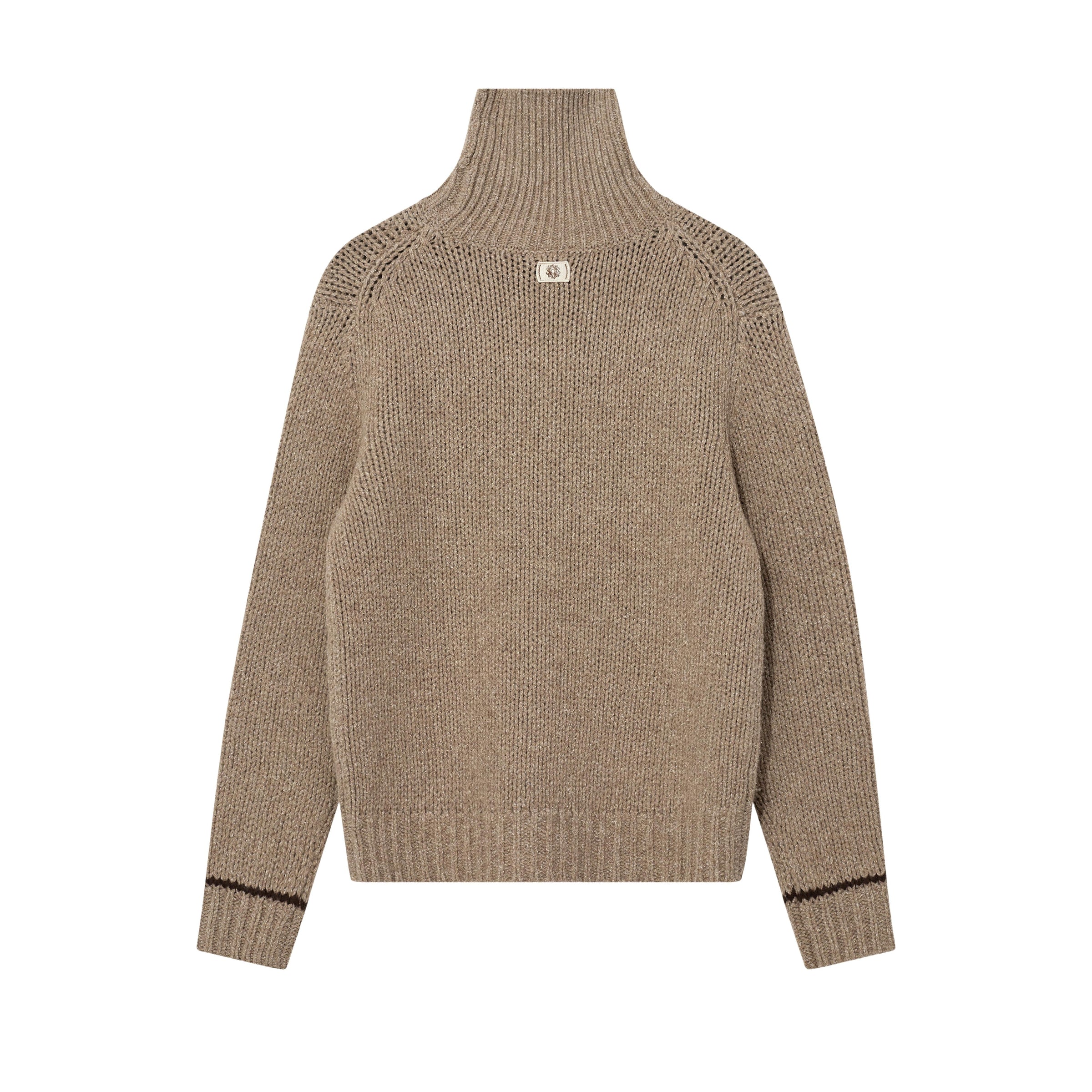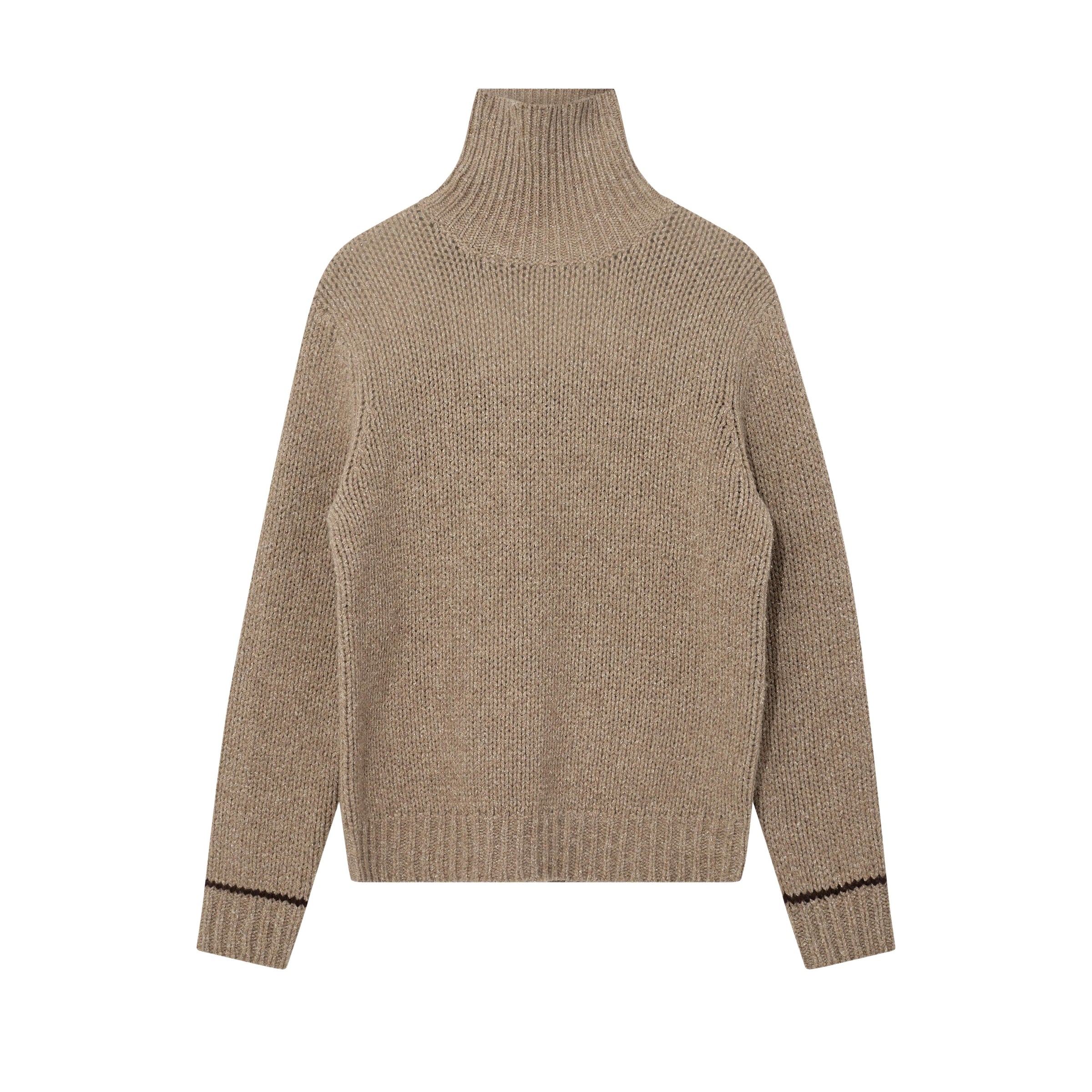 En stilfuld rullekravestrik i lys brun, der kombinerer komfort og klassisk elegance – perfekt til både hverdag og pænere brug.