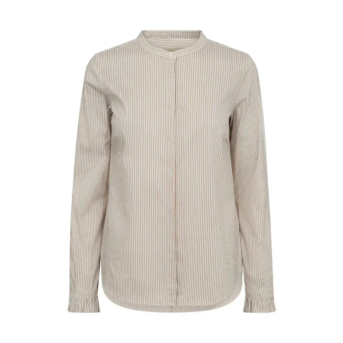 Mattie Stripe Shirt fra Mos Mosh er en elegant og tidløs skjorte i farven Safari. Den har et klassisk design med fine striber i afdæmpede nuancer, som giver et feminint og moderne udtryk – ideel til både arbejde og fritid.