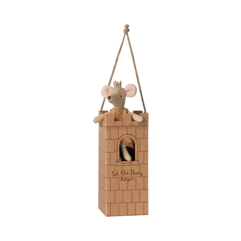 En sød prinsessemus, der bringer eventyr og magi ind i legen – inspireret af de små øjeblikke, hvor fantasi og nærvær skaber uforglemmelige minder.