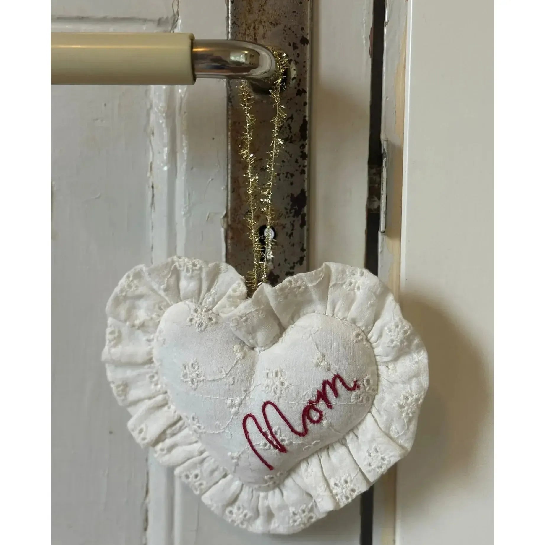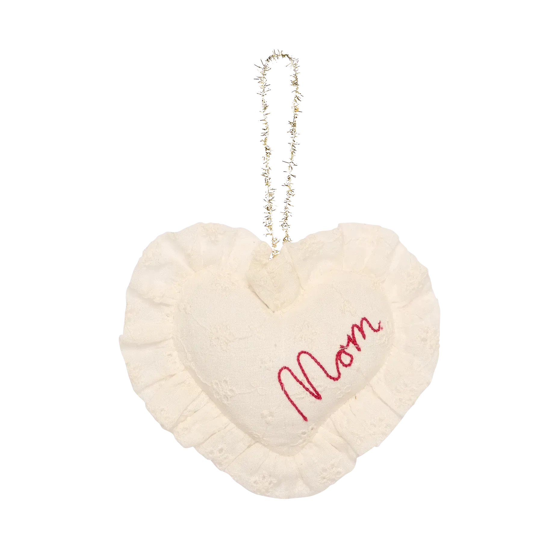 Sweetheart Ornament Mom fra Sissel Edelbo er et smukt og personligt ophæng, formet som et lille hjerte med broderet tekst. Det er en fin måde at vise kærlighed og taknemmelighed på – både som gave eller som en varm detalje i hjemmet.