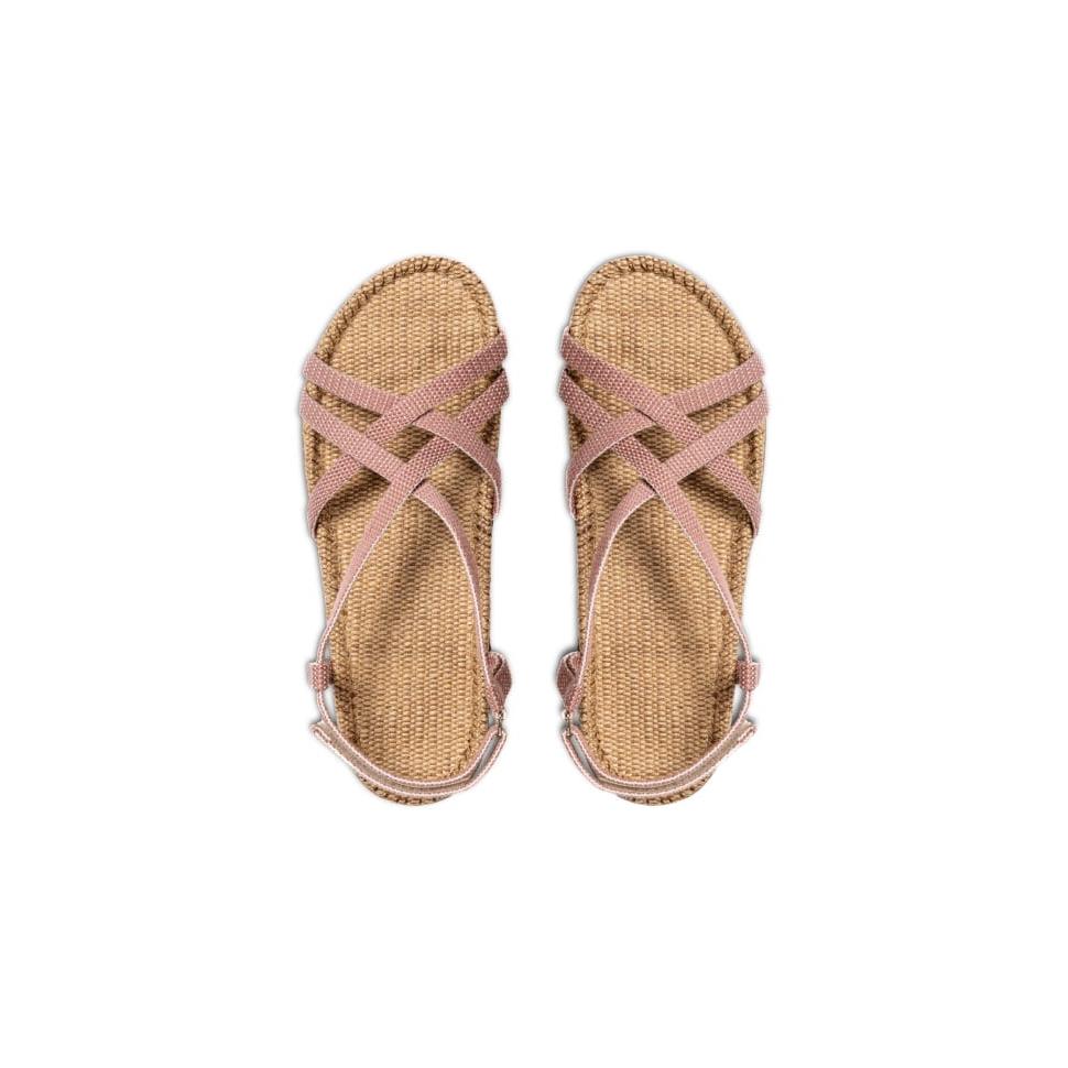 Women#2 fra Shangies by Stilov er en let og fleksibel sandal med et feminint udtryk i den støvede rosa farve Rosy Rose. Den har bløde, krydsende remme og en vævet sål, som former sig behageligt efter foden.