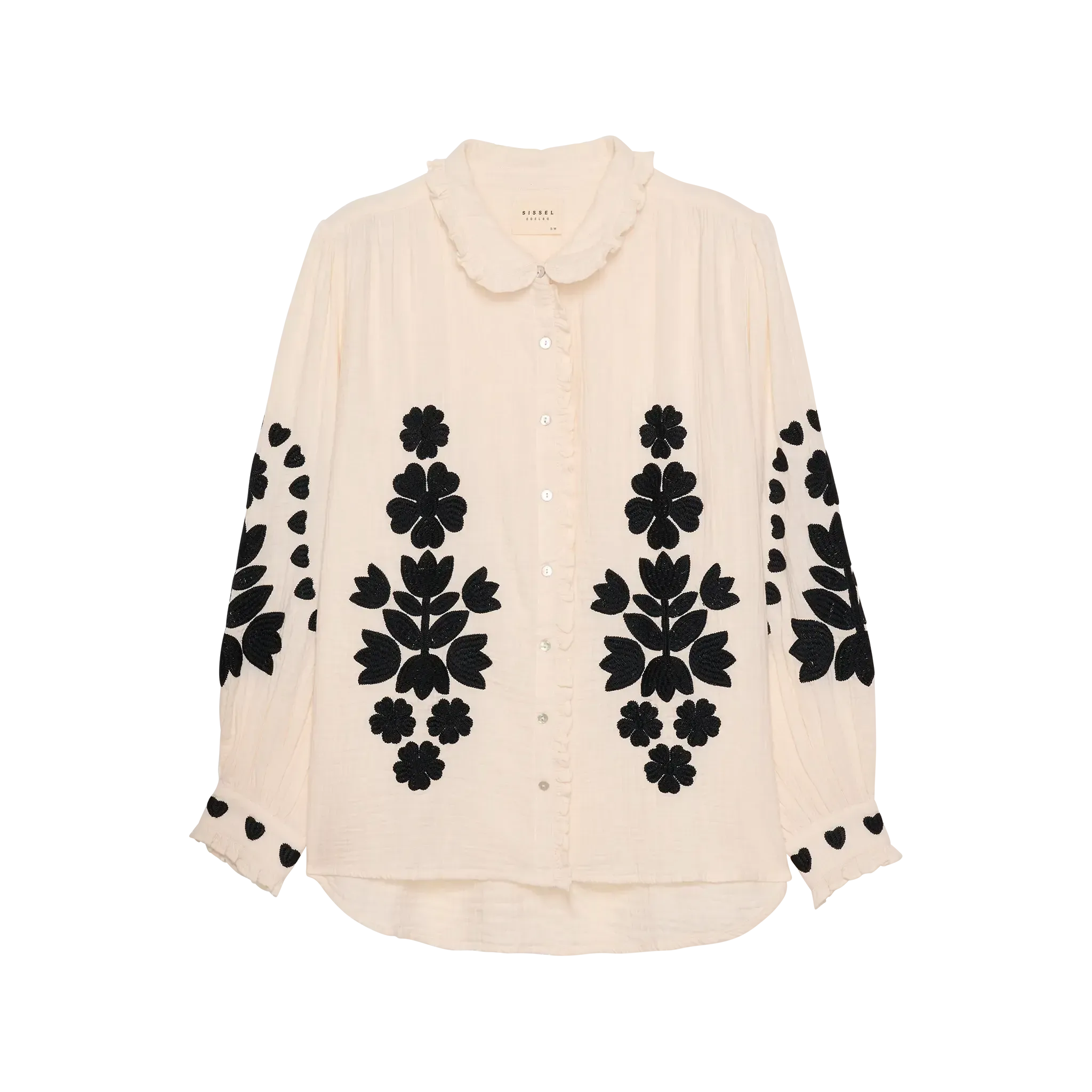 En let og broderet skjorte i økologisk bomuld – til dig, der elsker at kombinere det bløde med det grafiske i din hverdag.