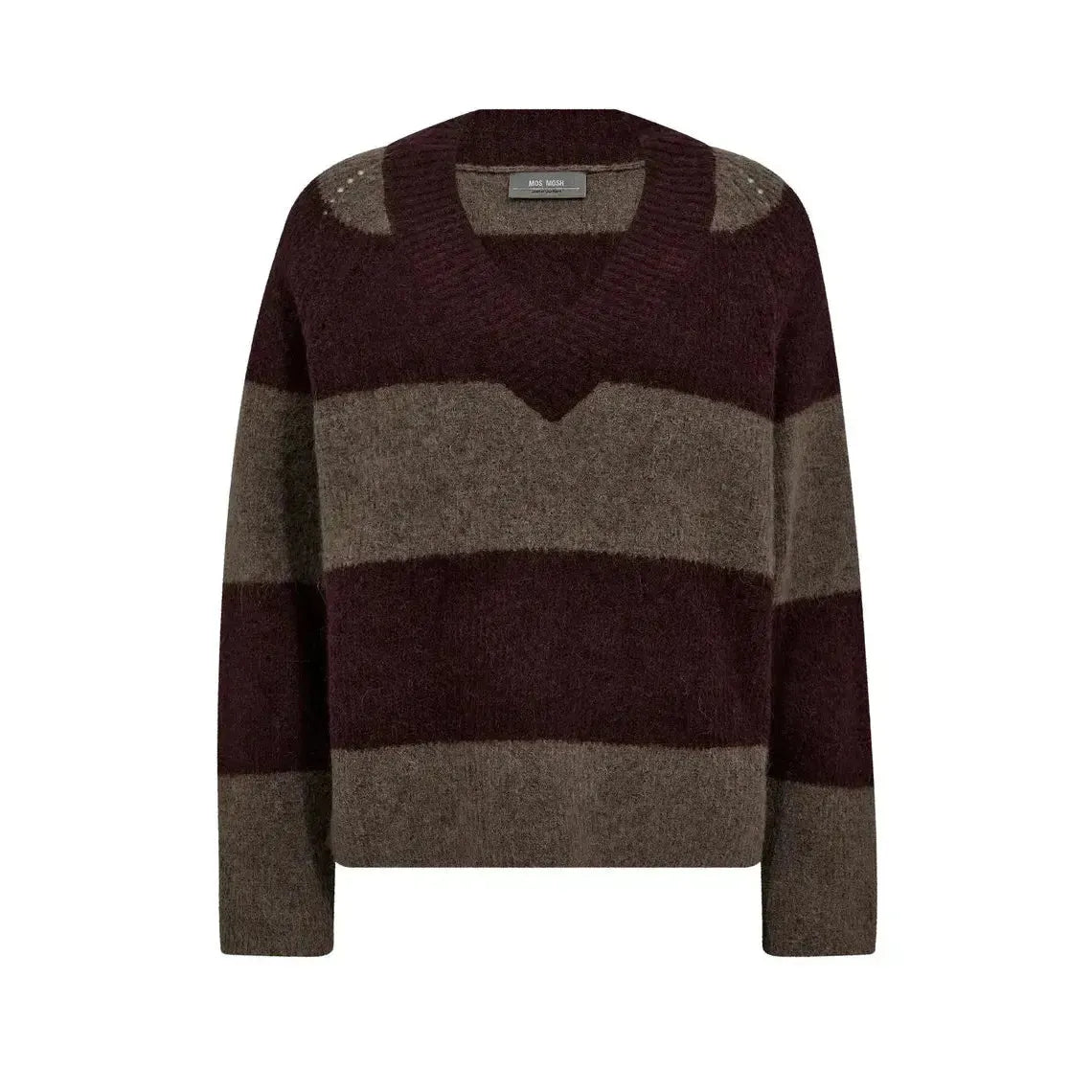 Mos Mosh, Taci Stripe LS V-Neck Knit, Fudge