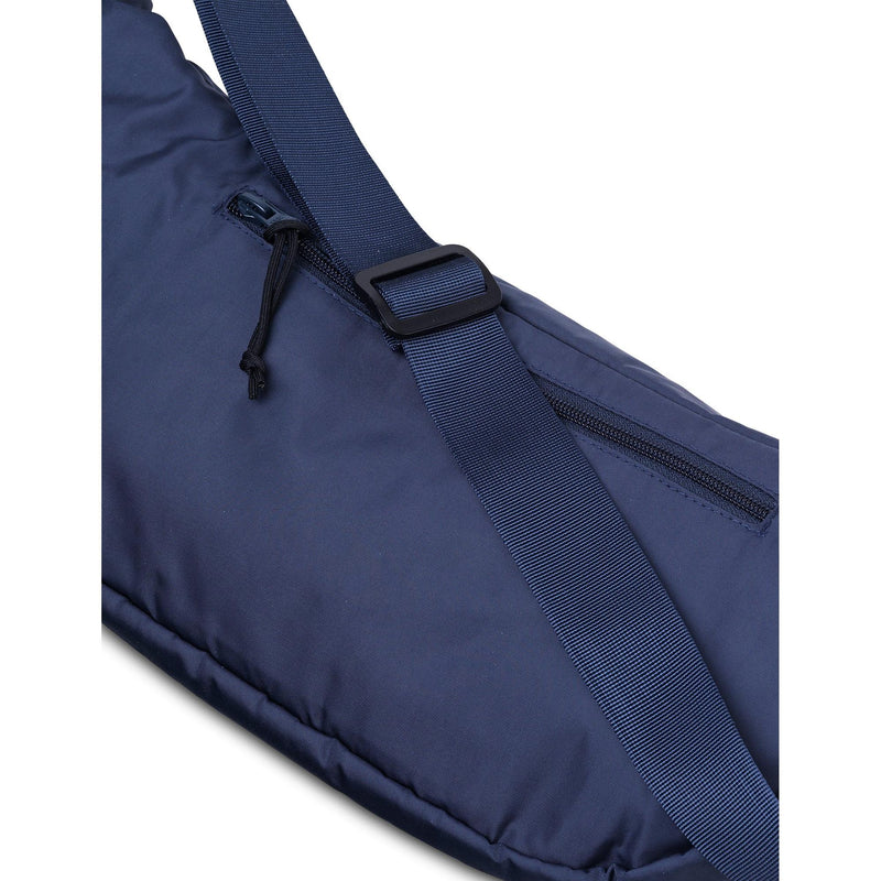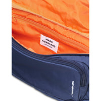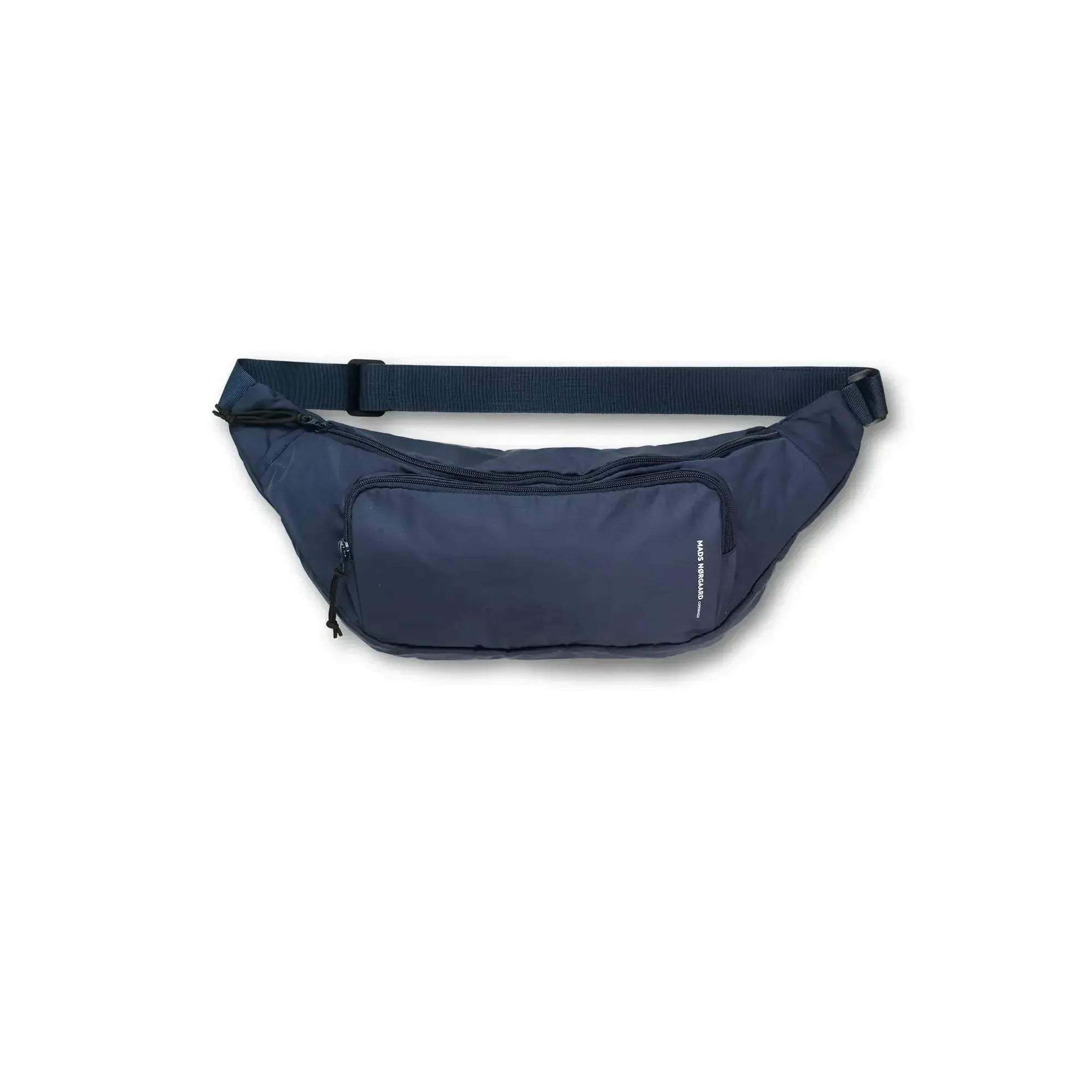 Tian Coco fra Mads Nørgaard er en bumbag med en justerbar strop, lynlås og hele fure rum: en lomme foran, en lomme bagpå og så en lomme inde i det store bumbag-rum. Samlet bredde øverst målt lige fra strop til strop: 46 cm. Samlet højde bagpå: 18 cm.