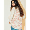 Giv din stil et kunstnerisk udtryk med denne skønne oversize skjorte i økologisk bomuld. Den har klassisk knaplukning, spids krave og knapmanchetter som finish. Med et flot håndmalet blomsterprint på ryggen og et skråtskåret bærestykke for et unikt tvist. Sæt den sammen med jeans i en wide-leg-pasform for et enkelt, men cool look.