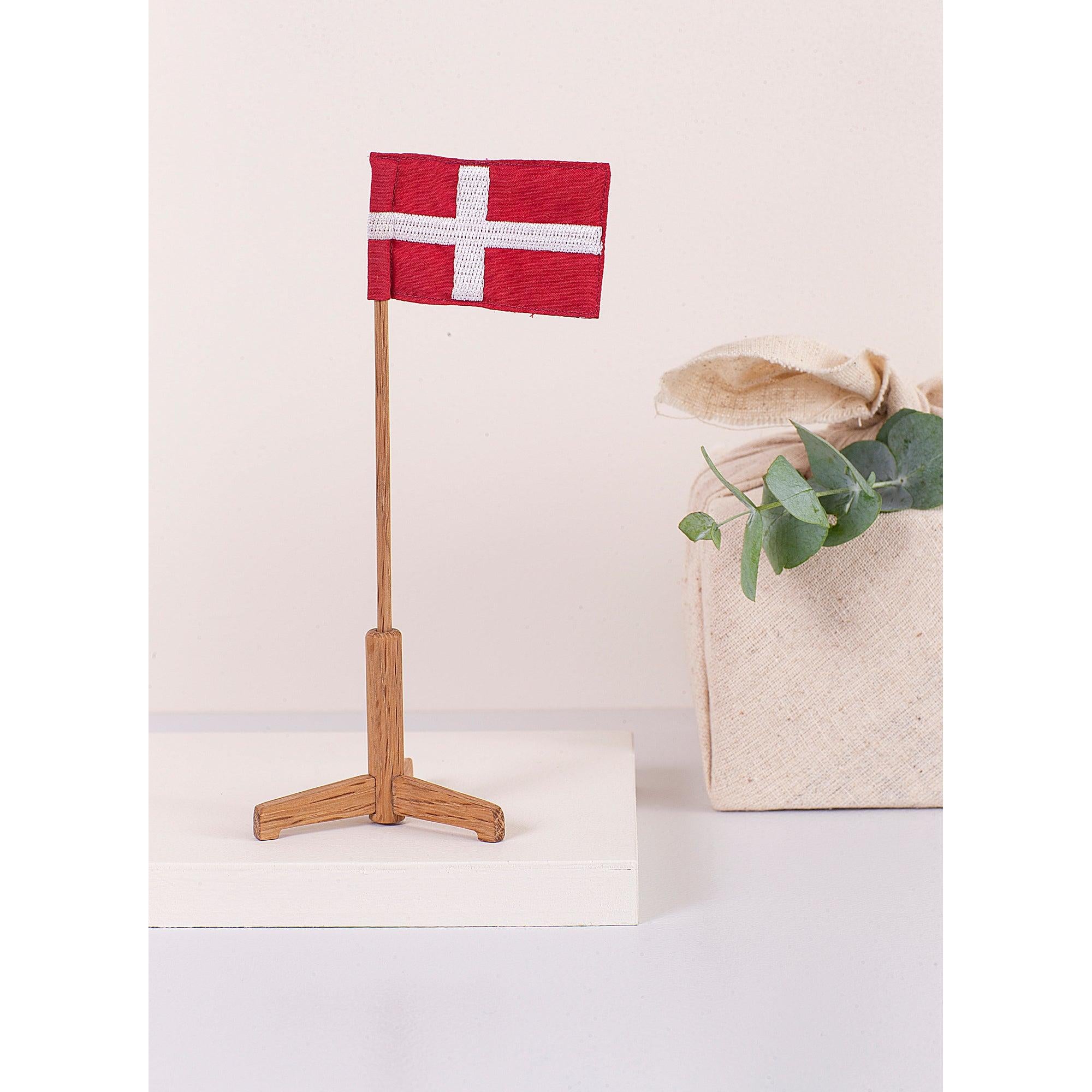 Festflaget er fremstillet i FSC®-certificeret eg med flag i tekstil. Det naturlige træ kombineret med det klassiske dannebrogsflag giver et tidløst og stilrent udtryk.